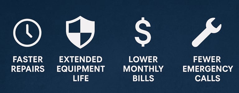 Regular HVAC maintenance helps your system run more efficiently by cleaning coils, checking refrigerant, and optimizing airflow—reducing your energy bills. It also prevents costly breakdowns by catching small issues early during inspections. Over time, this routine care extends the life of your system, protecting your investment and avoiding early replacements.